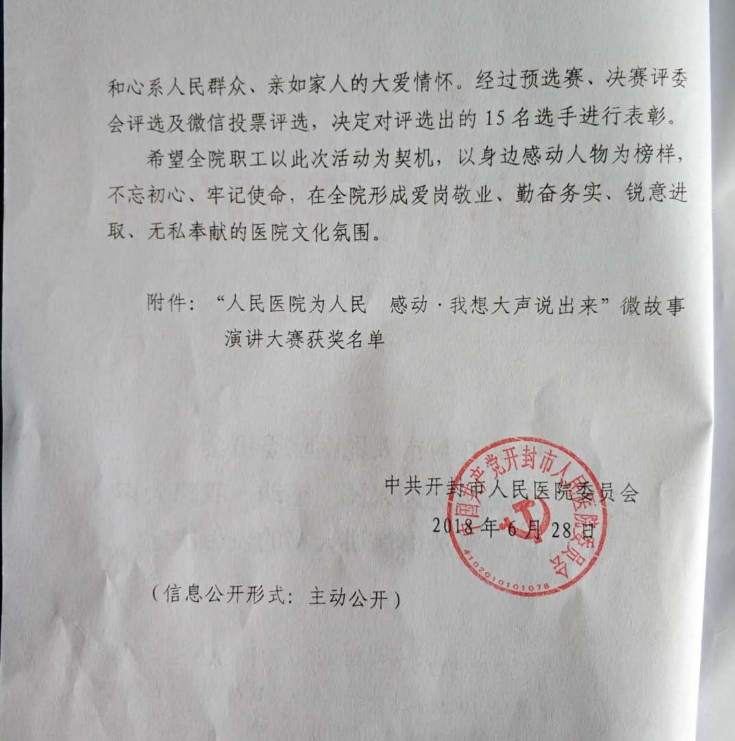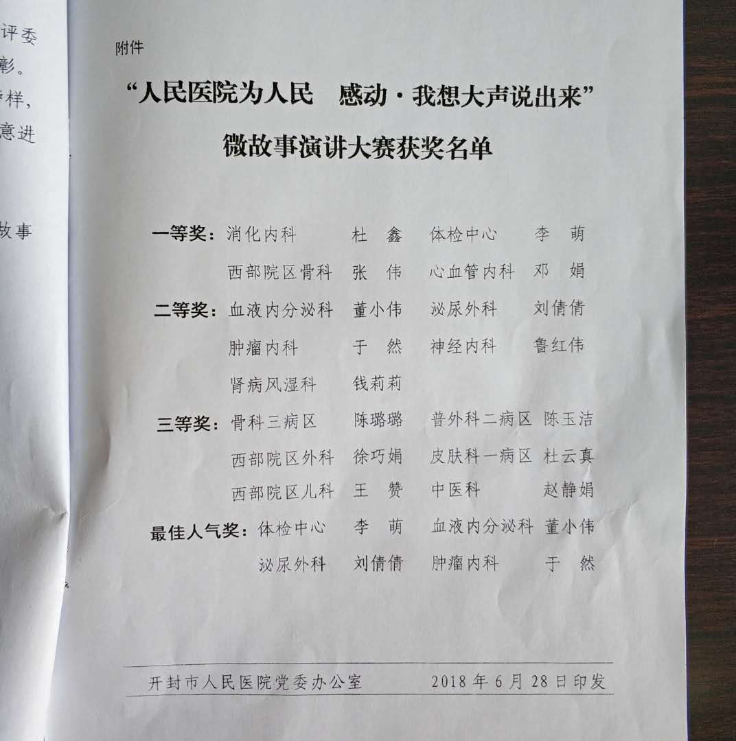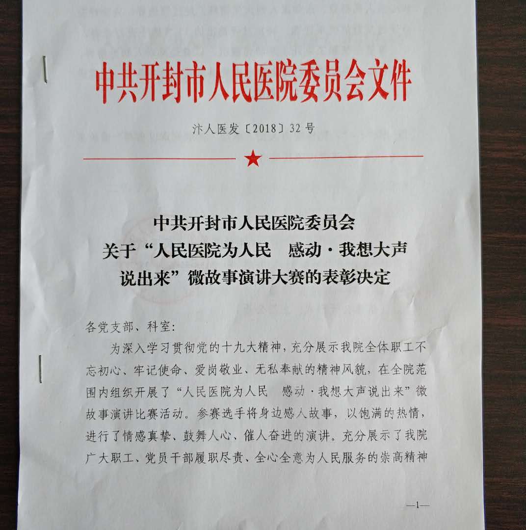 中共開封市人民醫院委員會關于“人民醫院為人民 感動·我想大聲說出來”微故事演講大賽的表彰決定