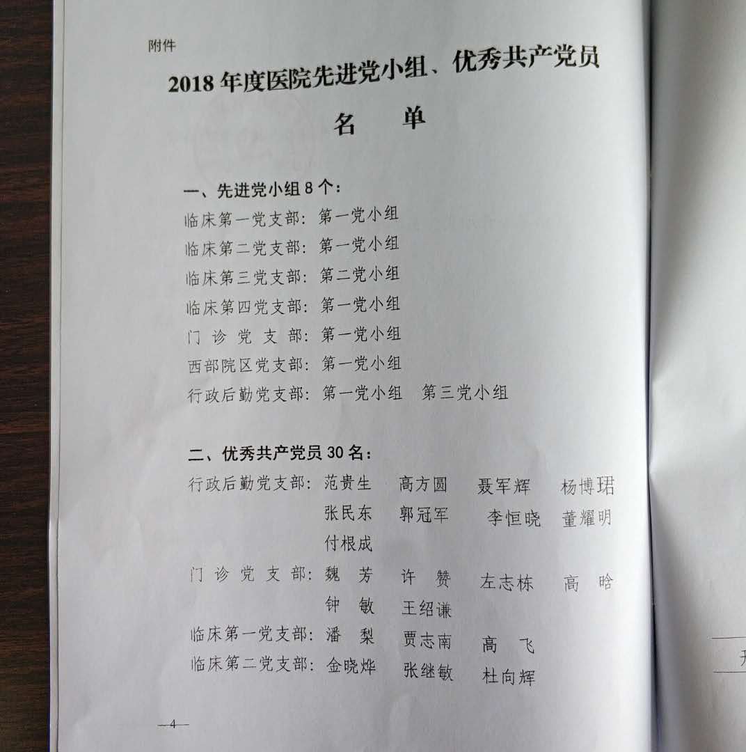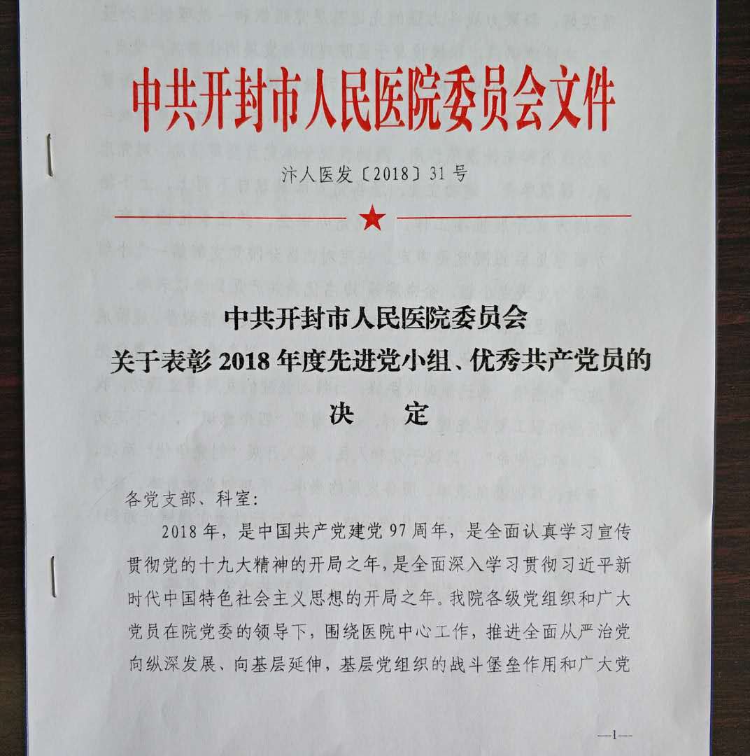 中共開(kāi)封市人民醫(yī)院委員會(huì)關(guān)于表彰2018年度先進(jìn)黨小組、優(yōu)秀共產(chǎn)黨員的決定