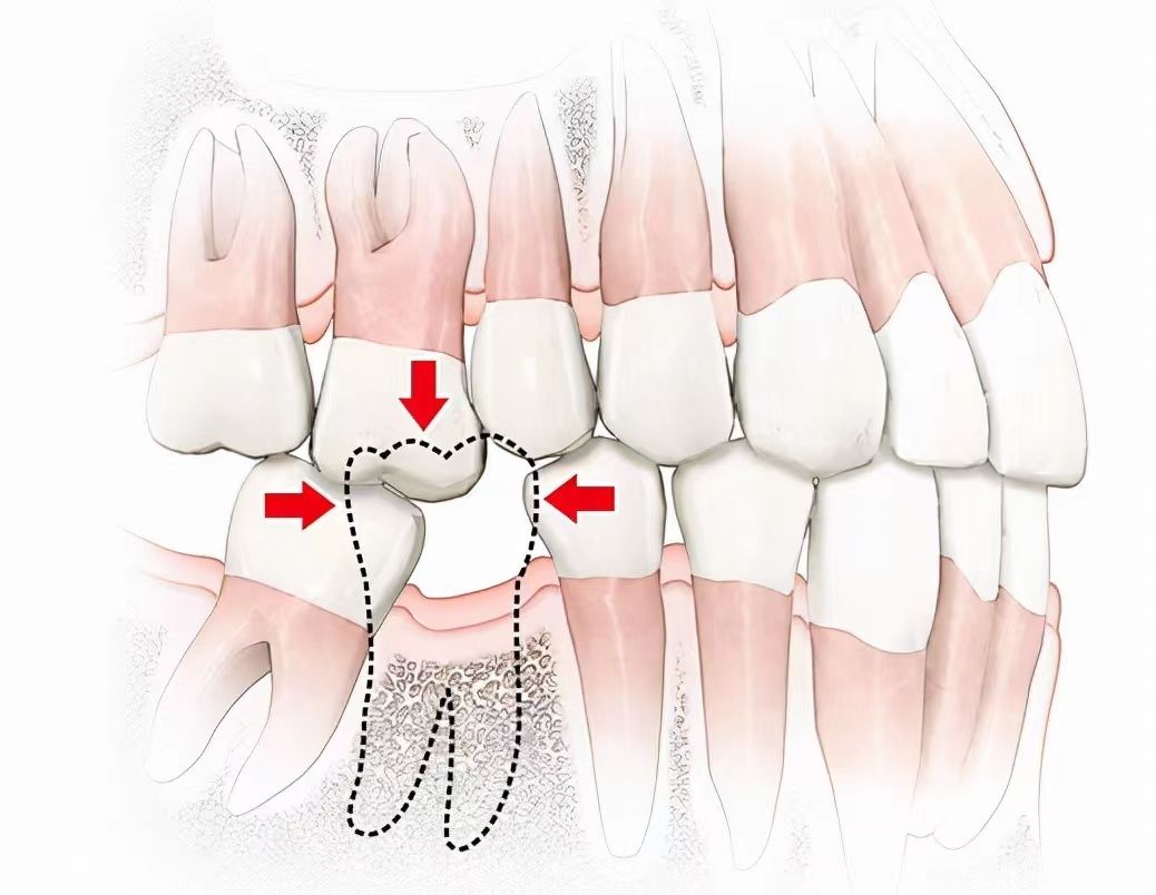 為牙列中個別牙的缺失,導致牙列不完整。如為單個牙缺失,長期不修復,將導致鄰牙及對合牙的改變,致降低咀嚼效率,增加其他牙患病的風險。
